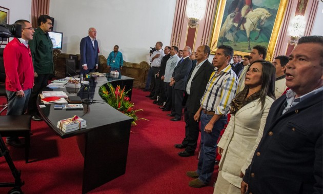 Y para hacer más mella del alma rebelde, que aún pudiera sobrevivir en la sociedad colonizada, la trasnacional castro comunista organizó una reunión en Miraflores-cuando se dan cita alcaldes y gobernadores de oposición con Maduro y juntos corean el himno nacional, cantado con la voz del difunto Hugo Chávez- para dejar bien claro quién era su agente preferido, para que no quedara dudas que el nuevo Candidato de Manchuria de los rojos era el actor protagónico de la comidilla, de esa obra de teatro que transformó a Venezuela en Cubazuela y a un gran porcentaje de venezolanos en cubazolanos.
