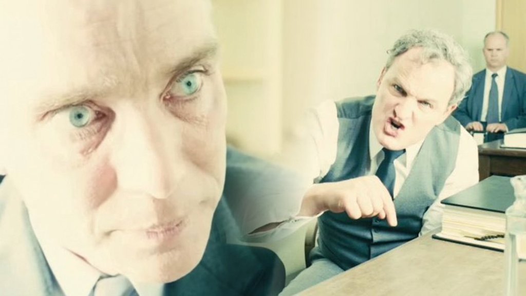 Otra escena fabulosa es cuando Oppenheimer es atacado por el verbo del abogado acusador en el proceso que lo defenestró: sus ojos brillan con flashbacks del espanto causado por las bombas, con unos efectos visuales impactantes para los espectadores.