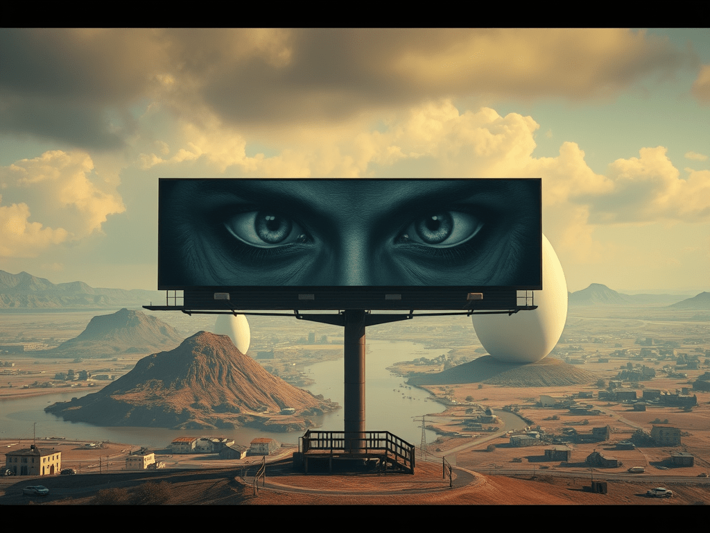 En aquel pueblo hay una valla publicitaria gigantesca, con los ojos del Dr. Ecklerburg. Parece una mirada al acecho, como la de un dios despierto, presente, omnímodo. Observa desde arriba la vida de los hombres que no sueñan.